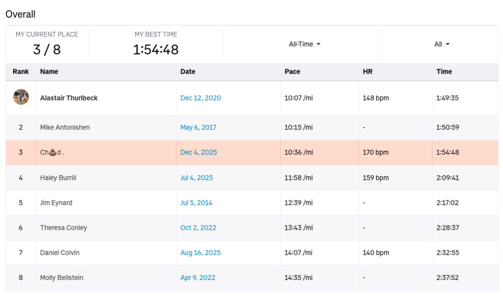 I managed to snag 3rd on the strava segment leaderboard for this. So that’s rad. I think I can get this segment. I need to make up 6 minutes. I can do that on 2005 road and a few parts of the east ridge climb. I can always squeeze out a few more minutes on the north ridge descent, too. So, I definitely think it’s doable.